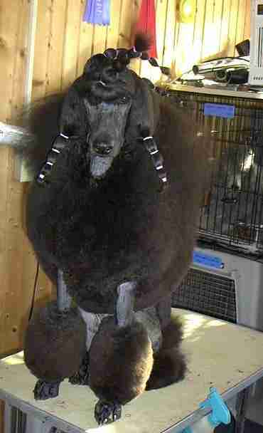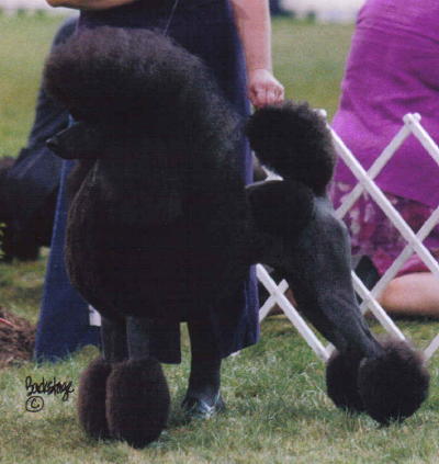 Major pointed as a puppy shown by Ann Rairigh. Finished with 3 majors, ranked in Top 20 Poodles first 6 months of 2003. Eyes CERF's 4/04; Thyroid Normal 8/04; OFA Good; SA Normal '04